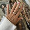 Anillo de acero quirúrgico plateado de 18mm de diámetro interno con estrellitas con piedritas incrustadas.