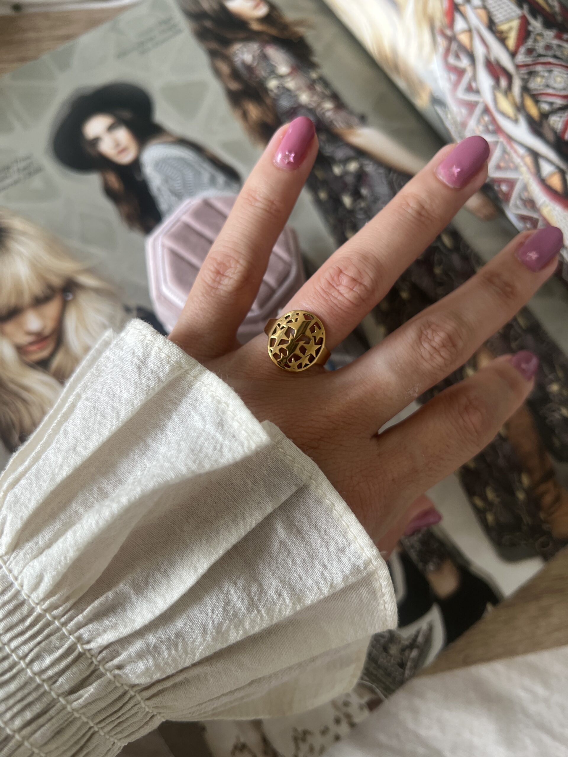 Anillo de acero inoxidable dorado con estrellas de 16 y 17 milímetros diámetro interno. Resistente al agua!