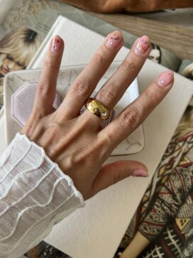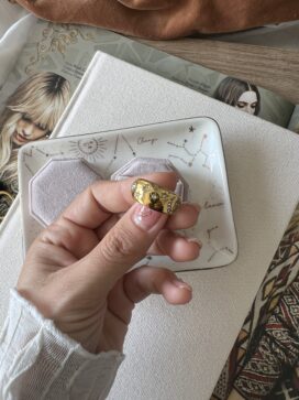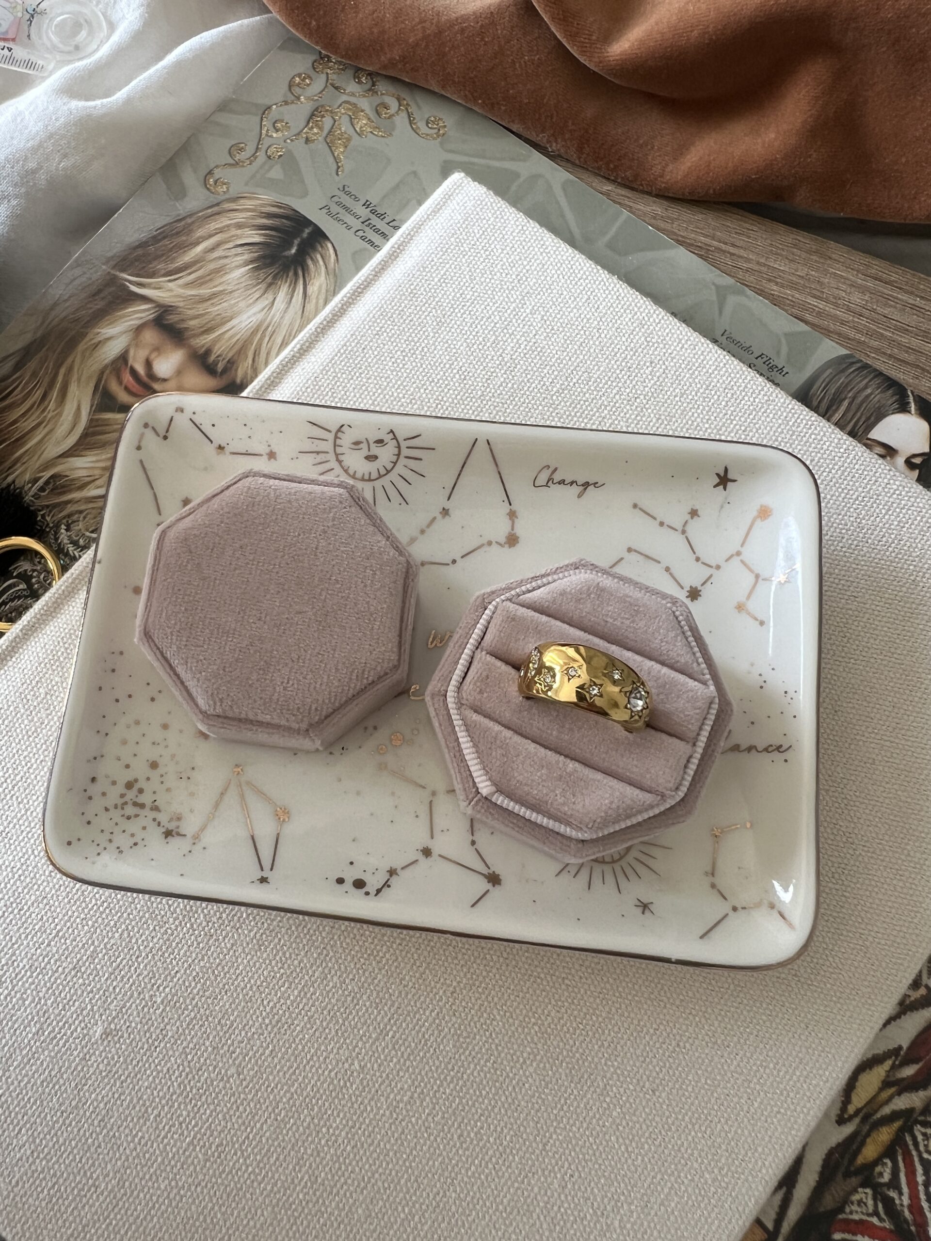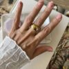 Anillo de acero inoxidable dorado con cubics incrustados. Mide 17 milímetros diámetro interno! Se puede mojar!