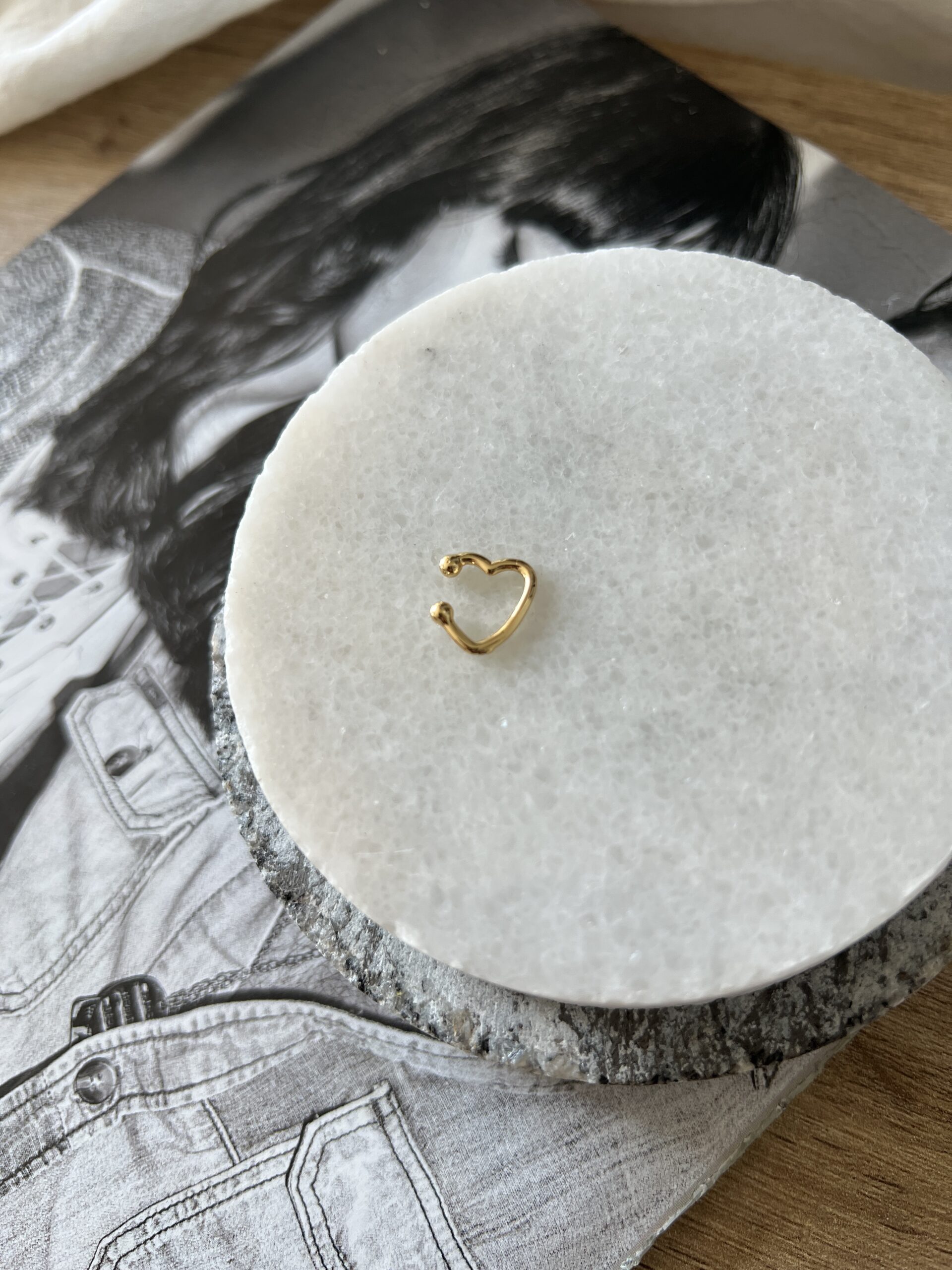 Aro a presión de acero quirúrgico dorado en forma de corazón. 1 unidad!