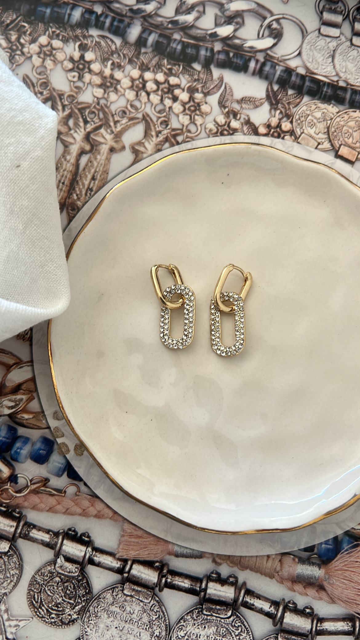 Aros argolla bañadas en oro con dije desmontable ovalado con cubics. También podés usar las argollas solas 😉