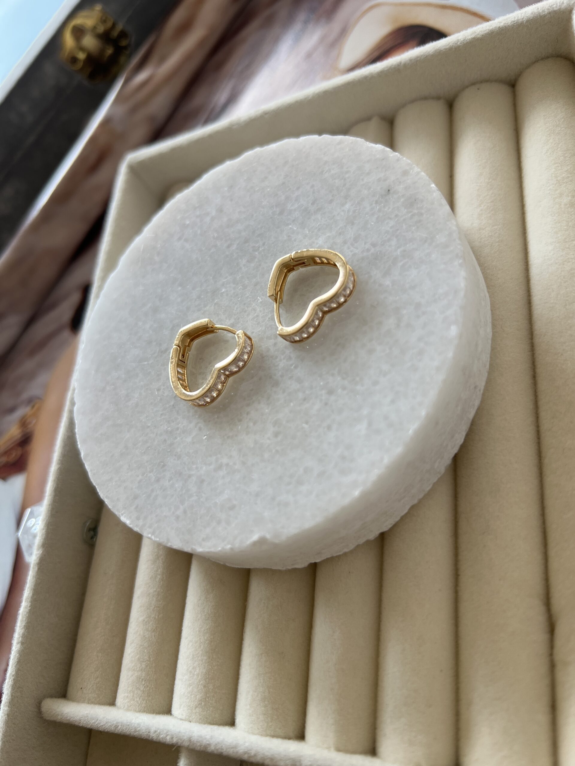 Aros de 2cm de diámetro en forma de corazón de acero quirúrgico con cubics blancos.