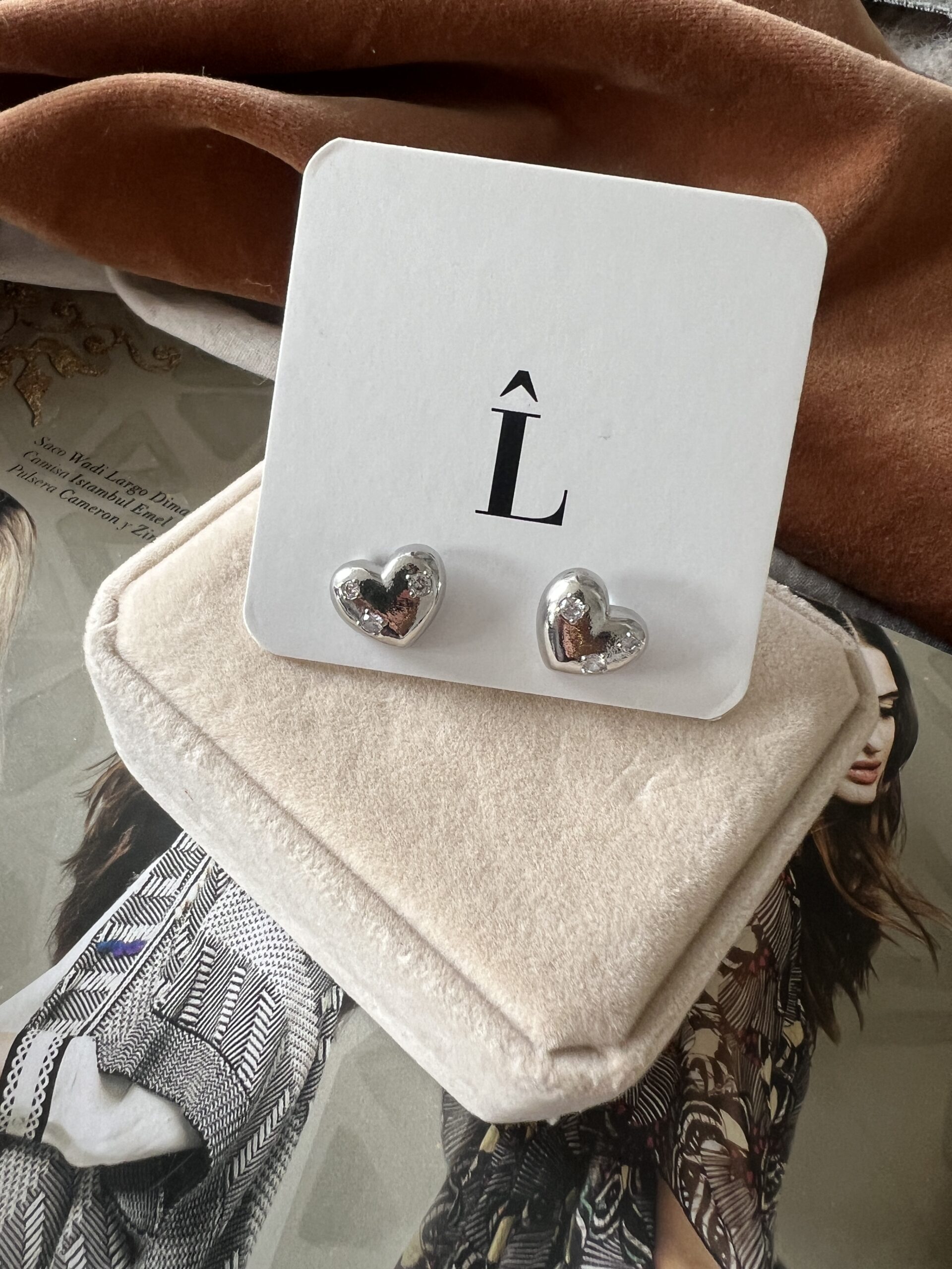 Aros de corazón de 1 cm de diámetro con cubics incrustados y palito pasante.