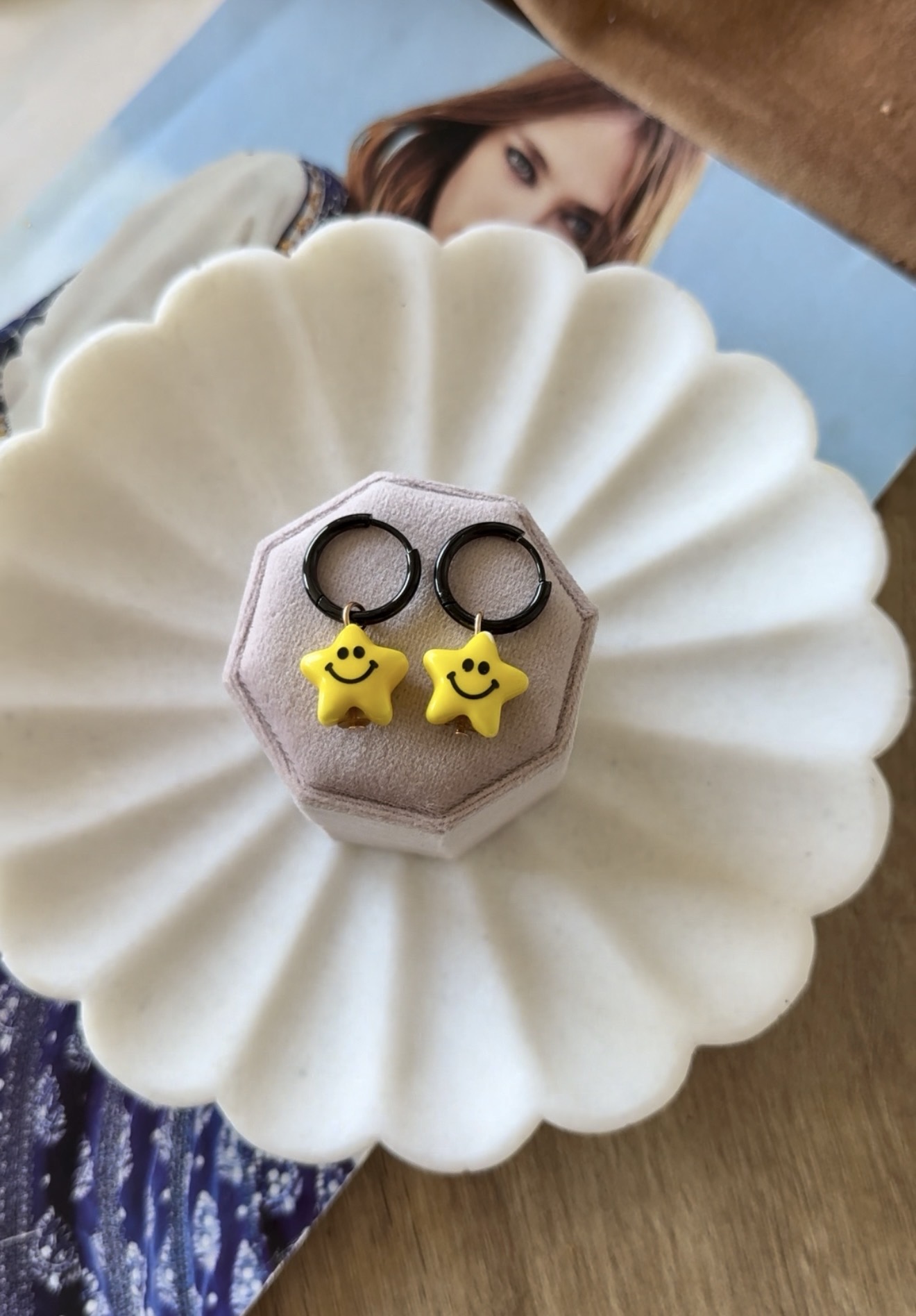 Aros argolla de acero negras de 1,5 cm de diámetro con dijes desmontables de cerámica. También podés usar las argollas solas 🙂