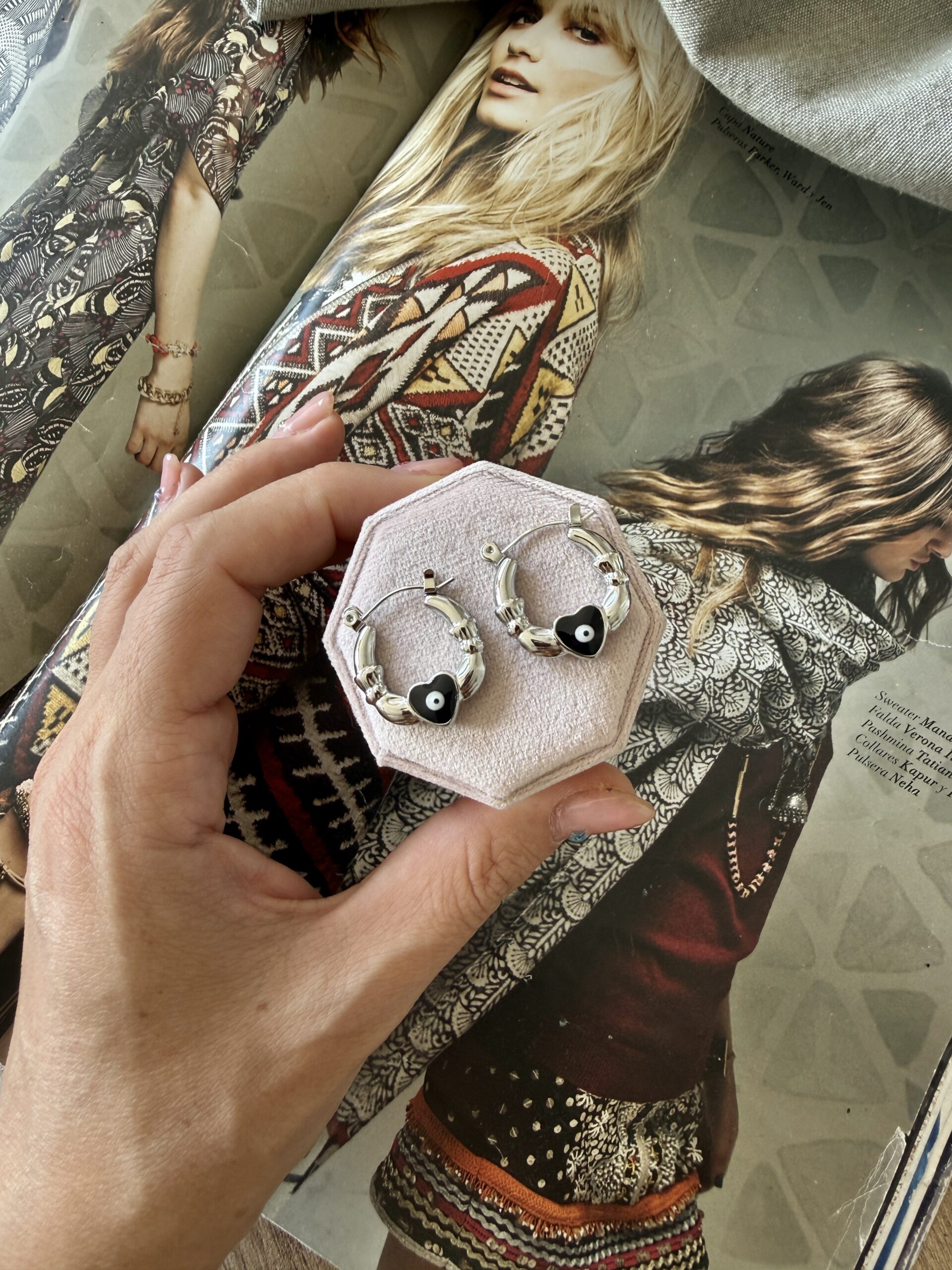 Aros de acero quirúrgico plateado de 2 cm de diámetro con ojito protector.