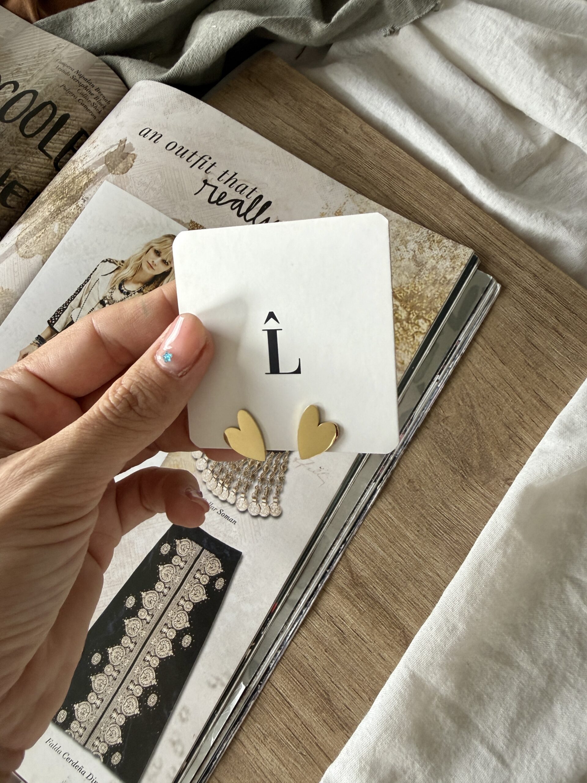 Aros de acero quirúrgico dorado con palito pasante y tuerquita. En forma de corazón de 1 cm de diámetro.