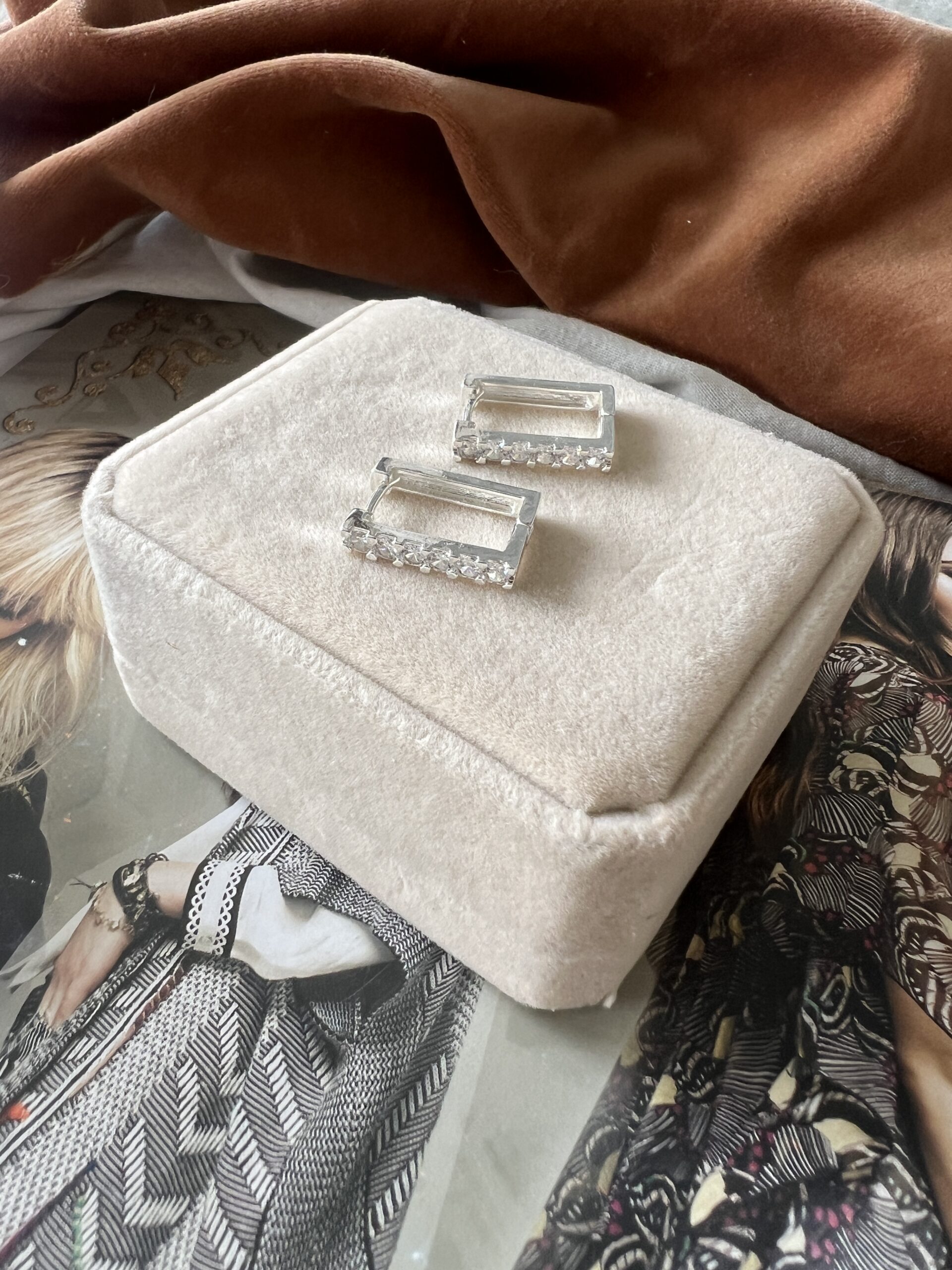 Aros de acero blanco con cubics incrustados. Cierre sistema de click!