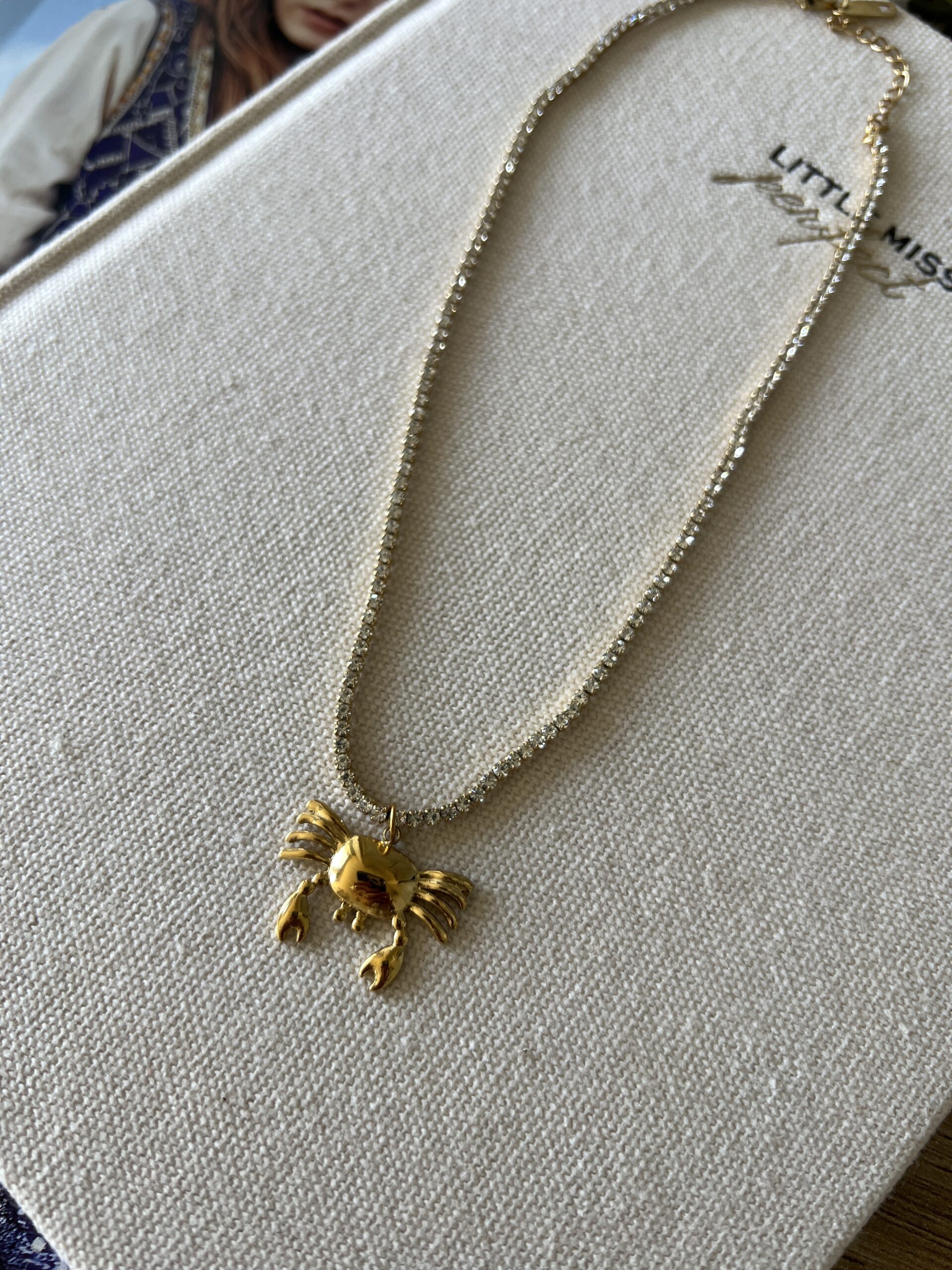 Collar de cadena con strass de acero quirúrgico dorada de 40 cm de largo + 5 cm de cadena regulable y dije de cangrejo de acero dorado!