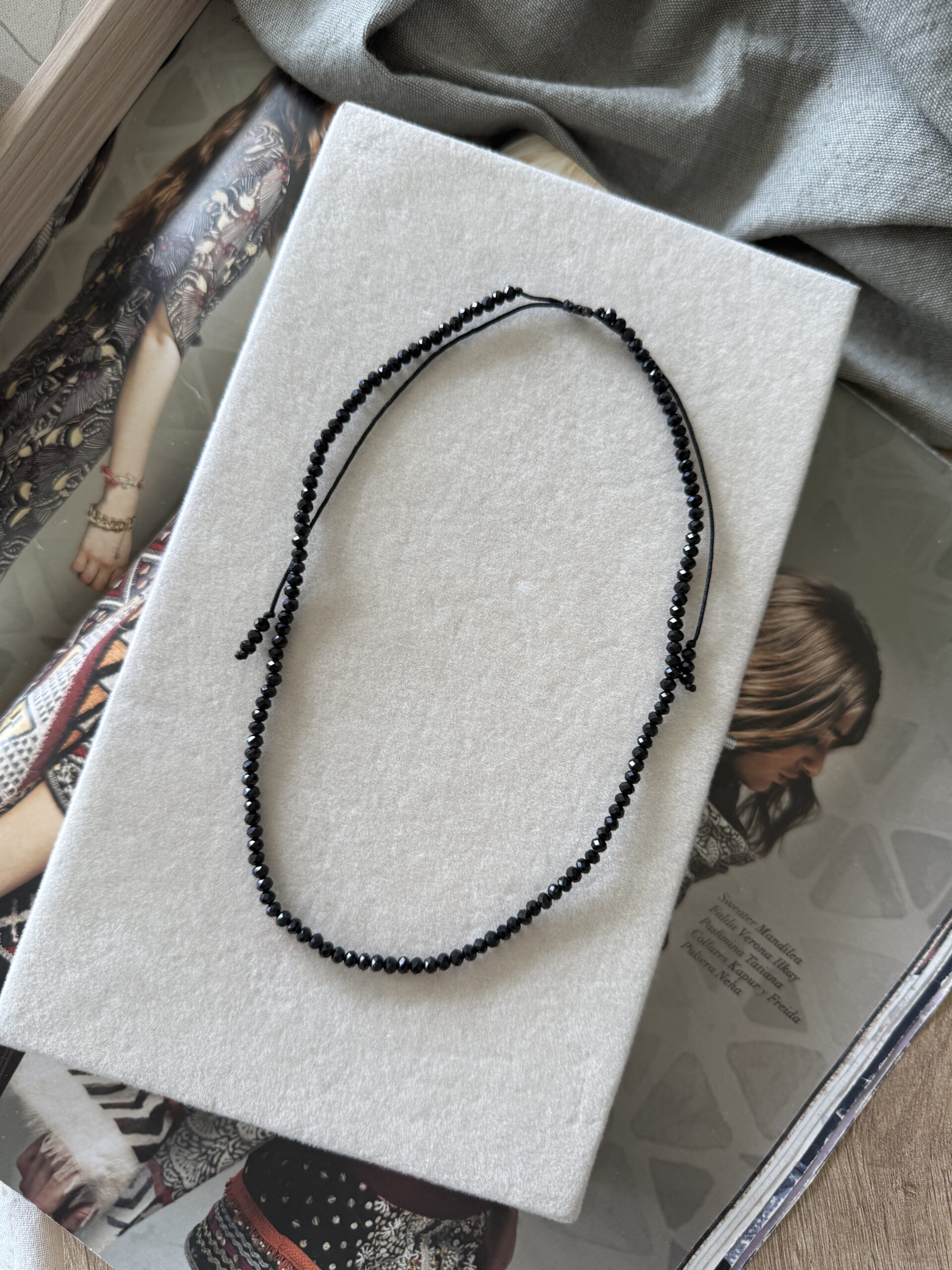 Collar regulable de cristales de roca negros. Lo podes usar largo o corto. Es resistente al agua! Ideal para combinarlo con uno con dije.