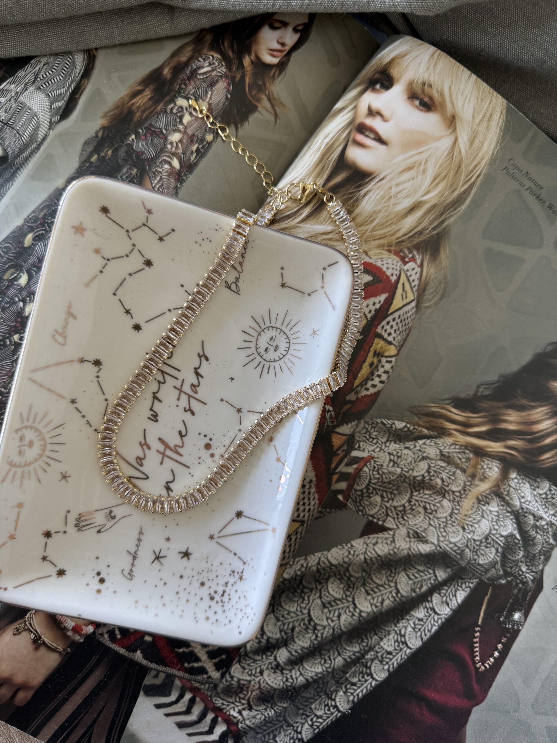 Collar cortito de 32 cm + 8 cm de cadena regulable dorado con strass.