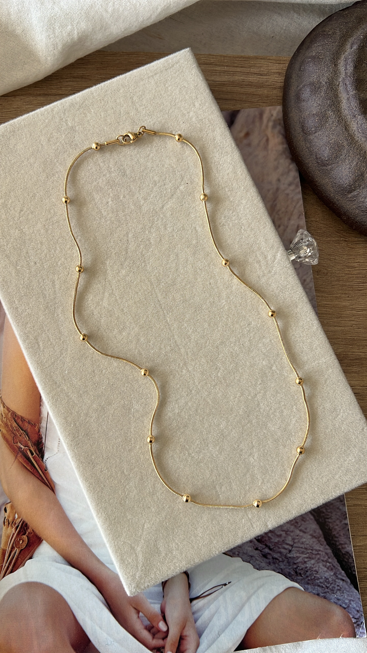 Collar Cadena de acero quirúrgico dorado de 48 cm de largo.
