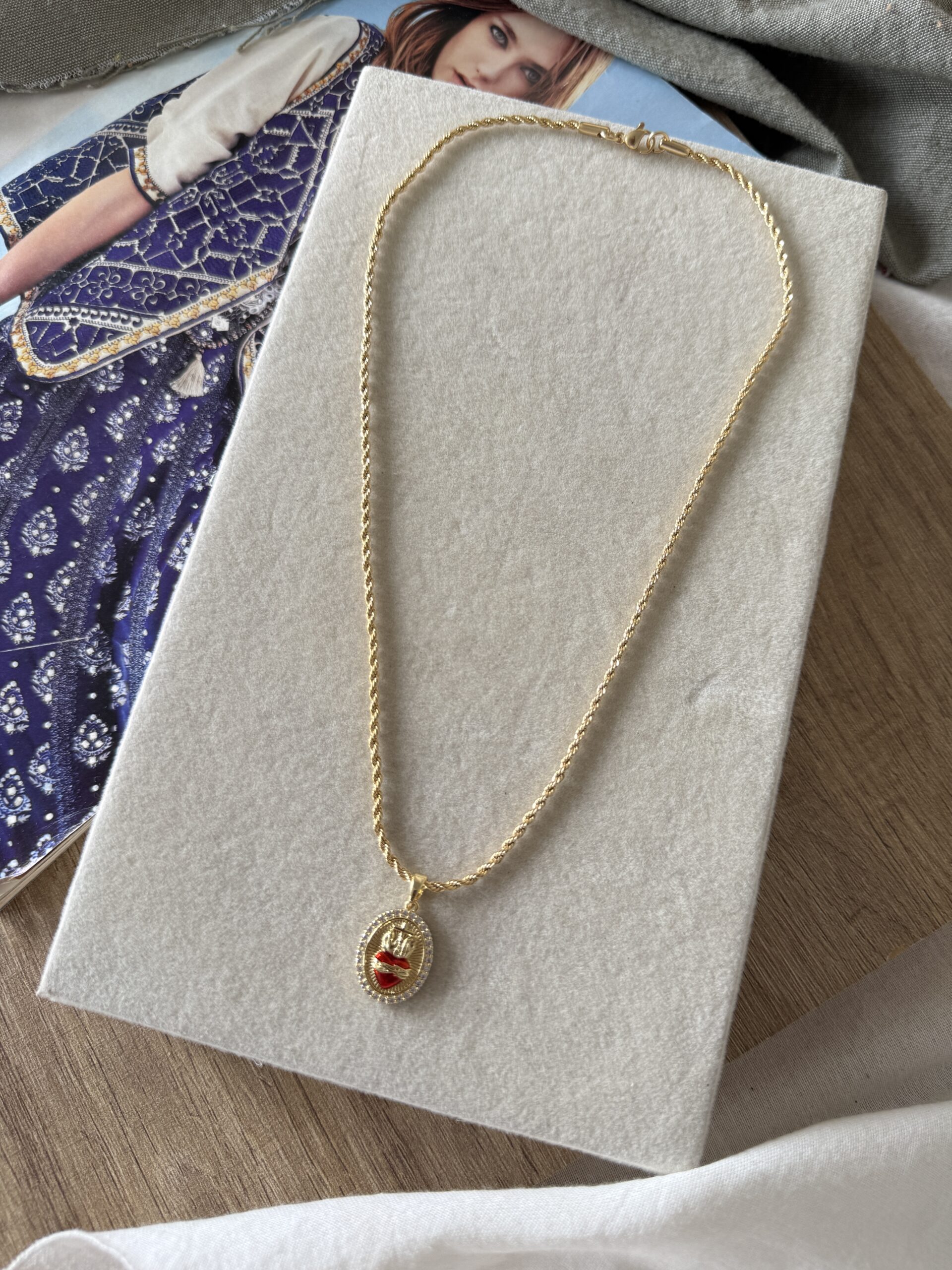Collar de acero quirúrgico dorado de 45 cm de largo con dije de corazón bañado en oro.