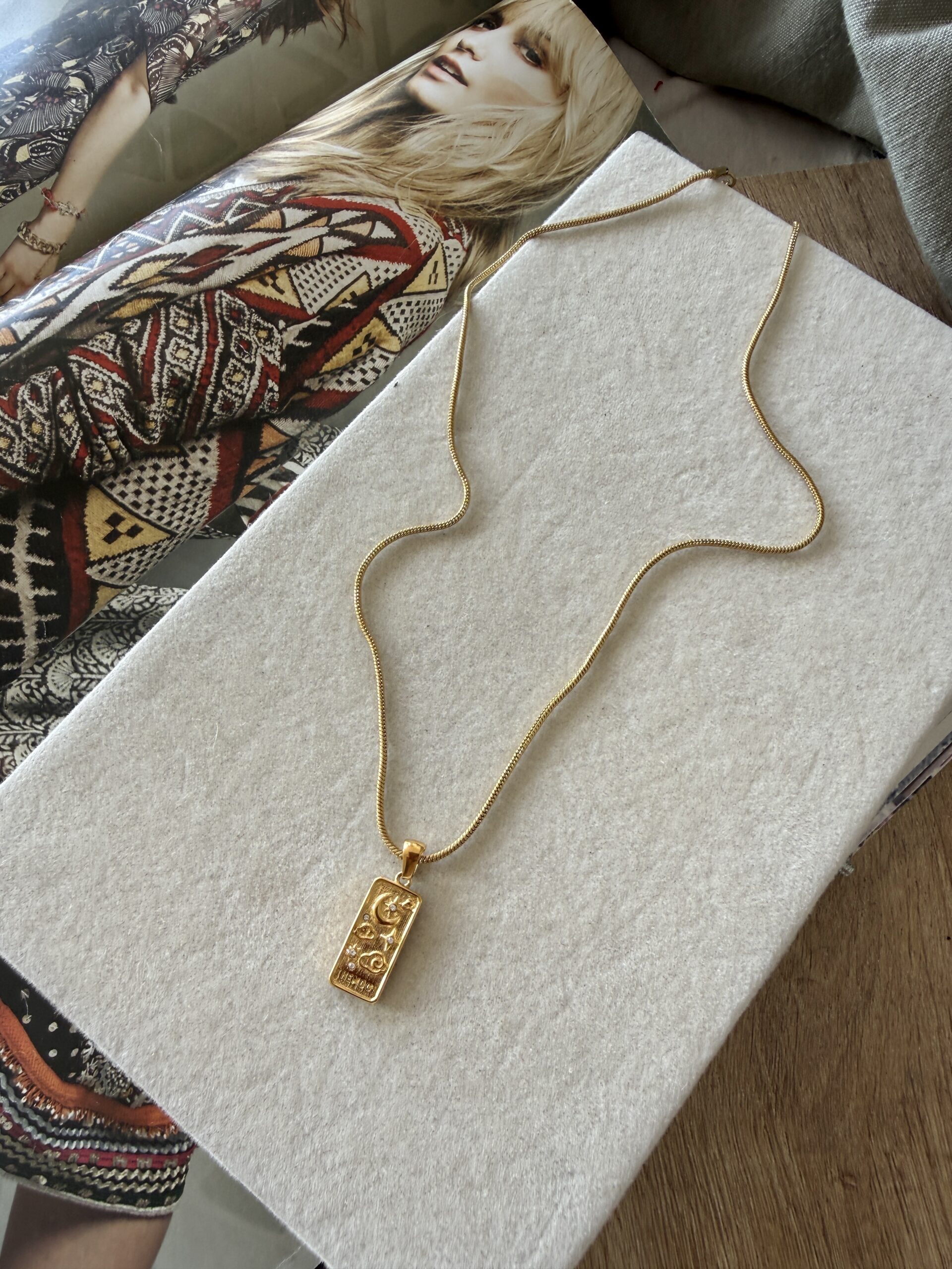 Collar de acero quirúrgico dorado de 45 cm de largo con dije de Moon.