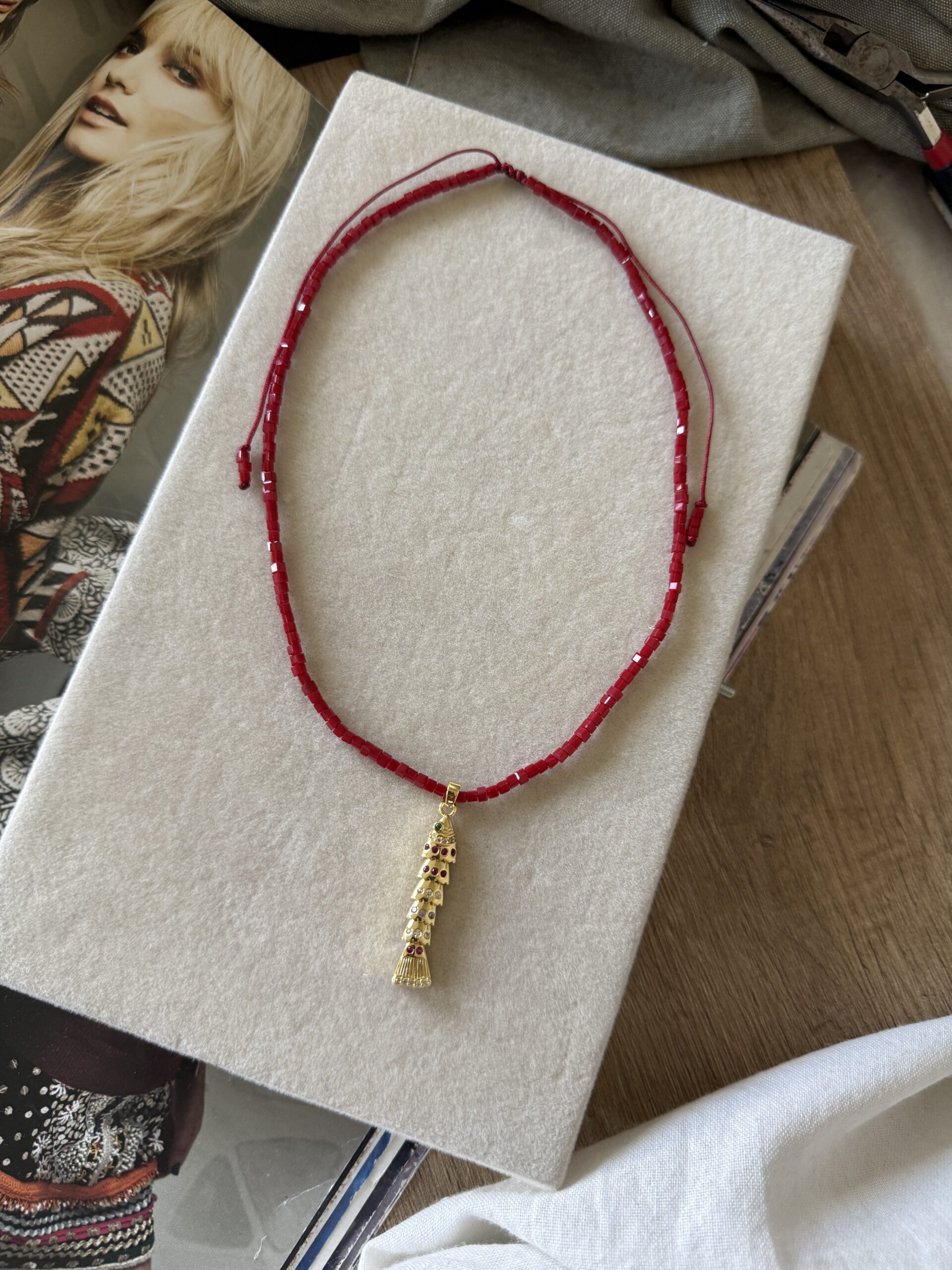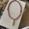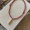 Collar regulable de cristales de roca bordo y dije de pez dorado.
