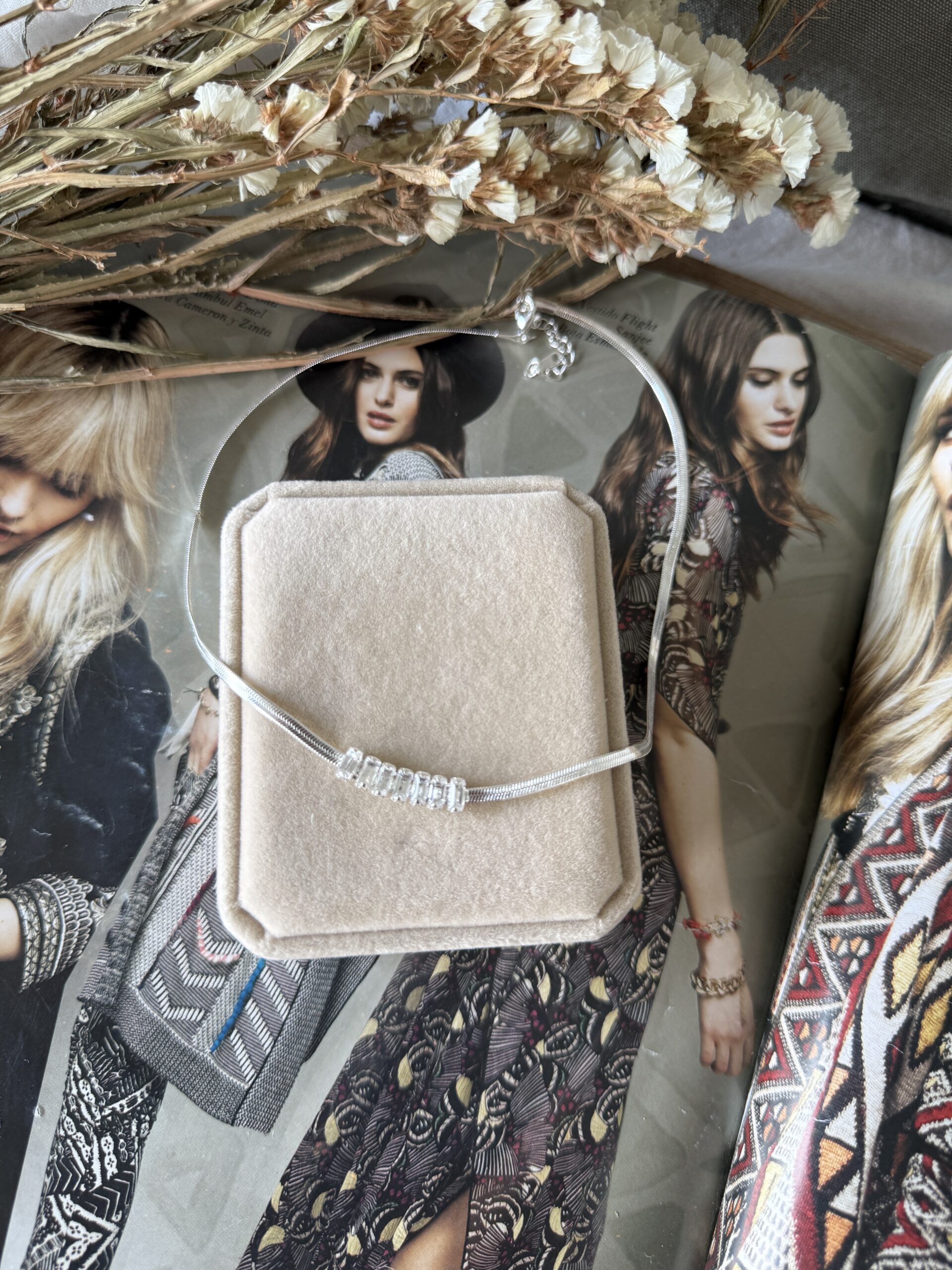 Collar cadena Snake de 40 cm de largo + 5 cm de cadena reculable con strass brillantes.