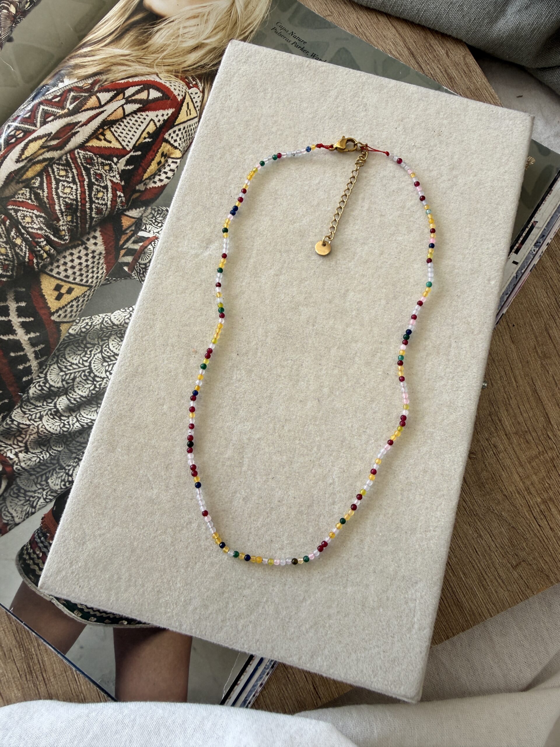 Collar regulable de piedras naturales mini multicolor. Mide 40 cm + 5 cm de alargue. Ideal para usarlo corto como base y agregarle uno más largo con dije, armando mix de collares 😉