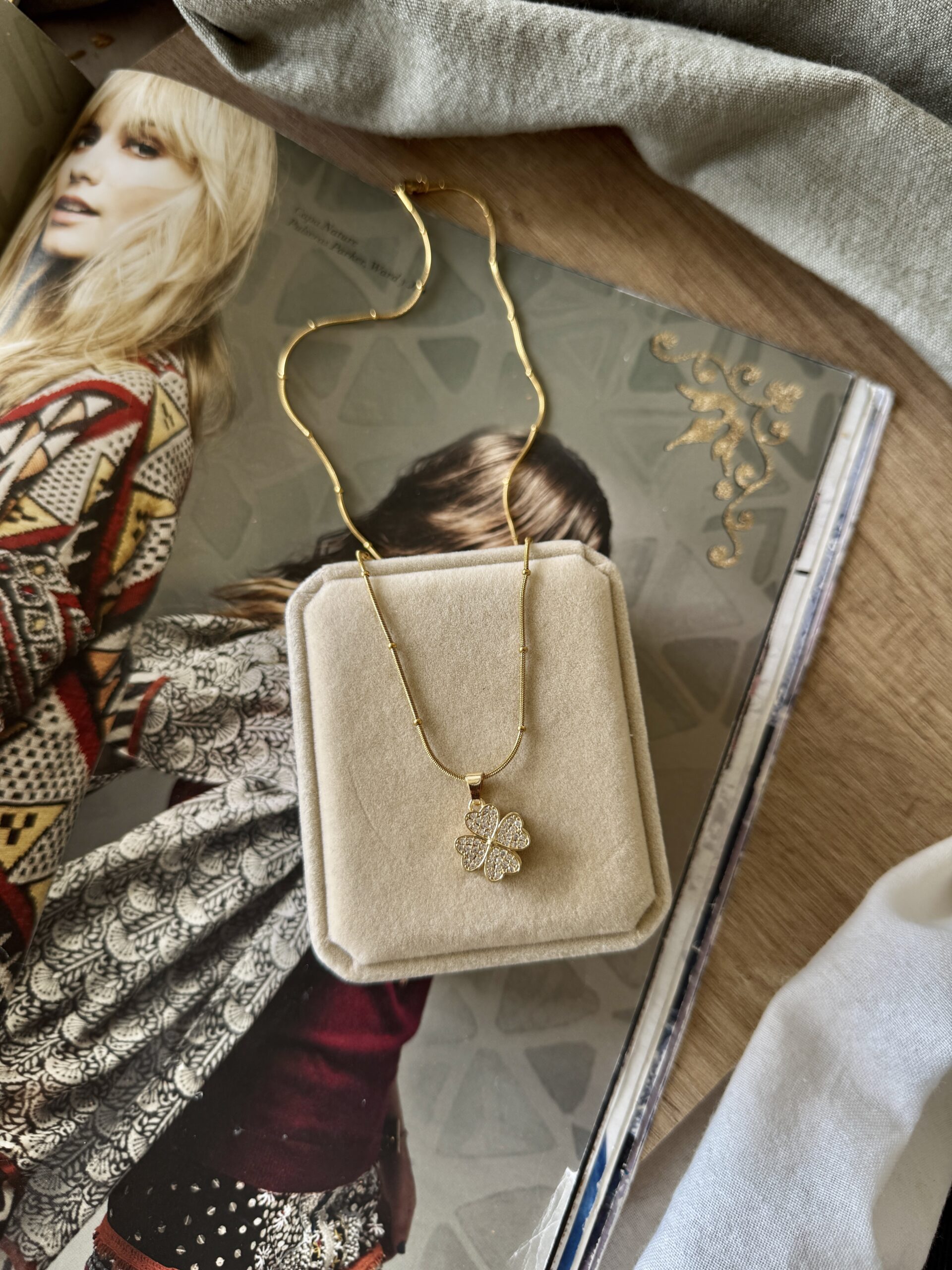 Collar de acero quirúrgico dorado de 45 cm de largo con dije de trébol de la suerte que gira!