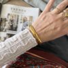 Esclava de acero inoxidable dorado con cubics incrustados. Se abre y tiene cierre click! Resistente al agua!