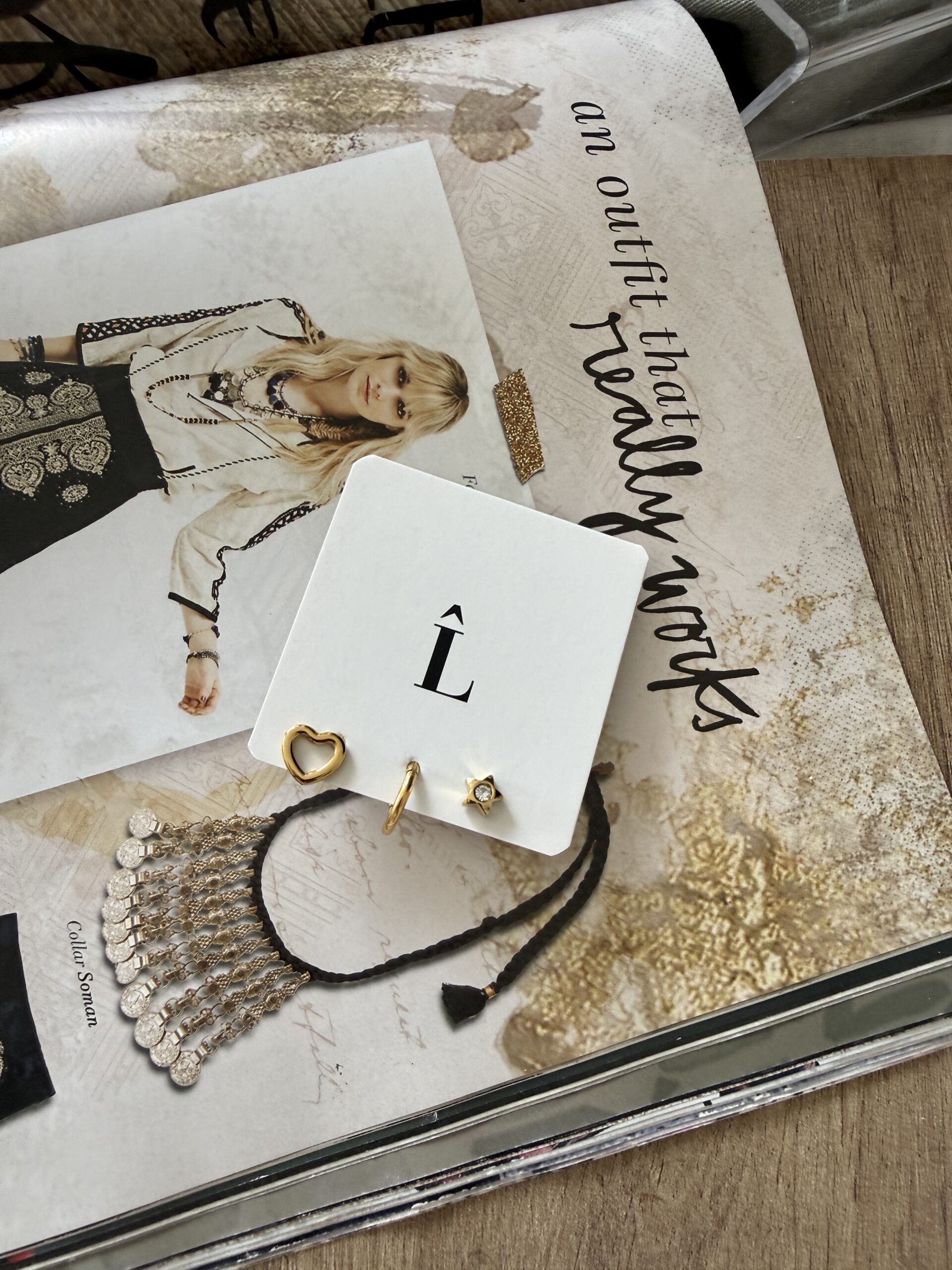 Pack de 3 unidades de Aros de acero quirúrgico dorado, una argollita de 0,8 mm y dos con palito pasante y tuerquita (corazon y estrella).