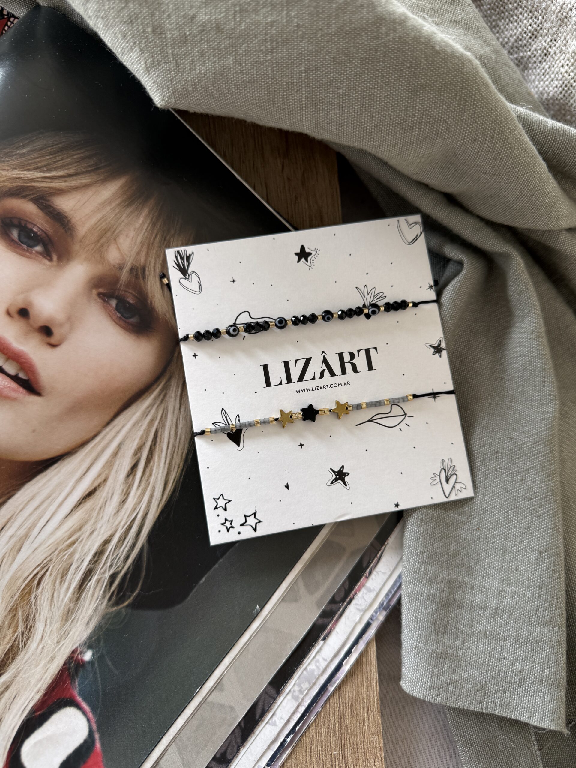 Pack de 2 unidades de pulseras/tobilleras regulables. Una con ojitos protectores y otras con estrellas!