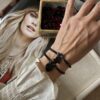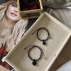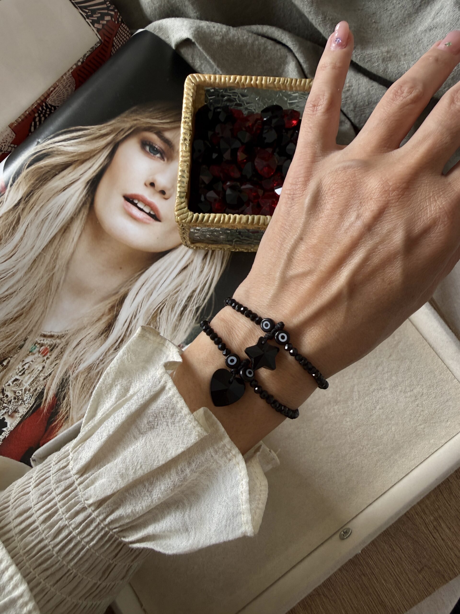 Pulsera regulable con cristales de roja negros, ojos protectores y dije de cristal facetado de estrella o corazón. Resistentes al agua!