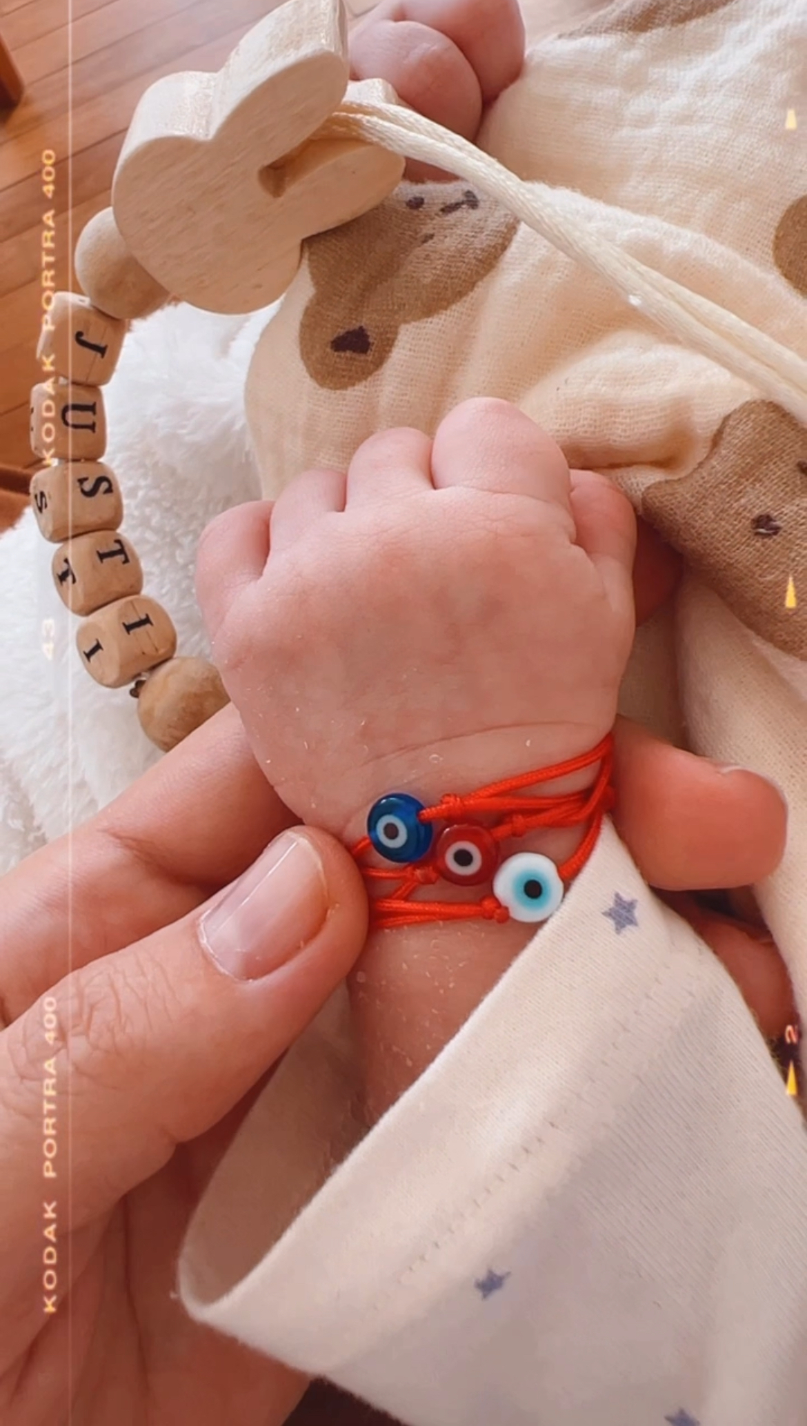 Con hilo rojo y ojo turco, amuleto de buena suerte 🍀 que actúa como escudo de protección contra la envidia y las malas vibras.
