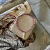Tobillera regulable de mini mostacillas rayadas y dije de pez turquesa.